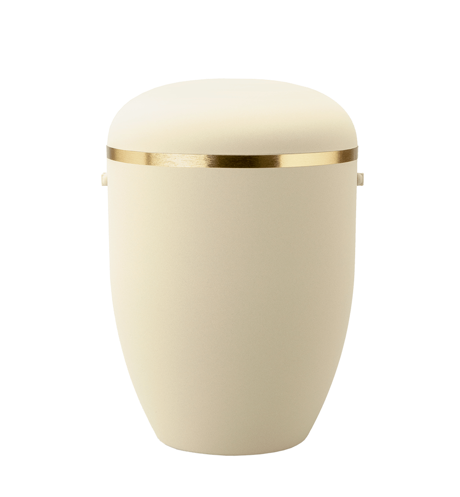 Elegant urna av Arboform med guldfärgad dekor. Xenon är tillverkad av en innovativ och ekologisk förgänglig trämassa som är 100 % biologiskt nedbrytbar. Lämplig för askpåse och askspridning.